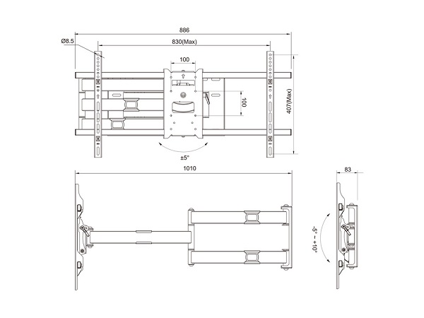 VESA standarts: 100x100, 200x100, 100x200, 200x200,